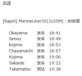 车站信息:显示JR四国的车站信息页面。 ※仅在访问JR四国网站显示 时刻表(PDF):显示车站时刻表。
