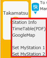 GoogleMap:Display Google Map. Set MyStation:The clicked station is registered as My station. The station you registered will be displayed automatically the next time the site is displayed. Also, if you click "Move My Station" in "Menu", you will move to the registered station.