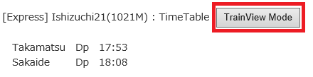 ○TrainView Mode In the TrainView Mode display, the display is updated at the timing when the train departs or passes through the station, and you can feel the atmosphere of actually getting on the train. (※Only for limited express trains and MarineLiners.) ①Click “TrainView Mode” on the timetable.